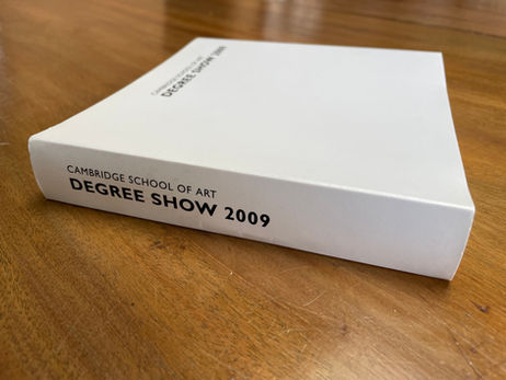 A collection of visual art and design projects, including maps of art degree show layouts, brochures, and open books displaying animation projects, graphic design content, and abstract art with text descriptions.